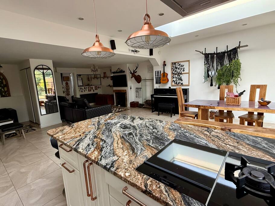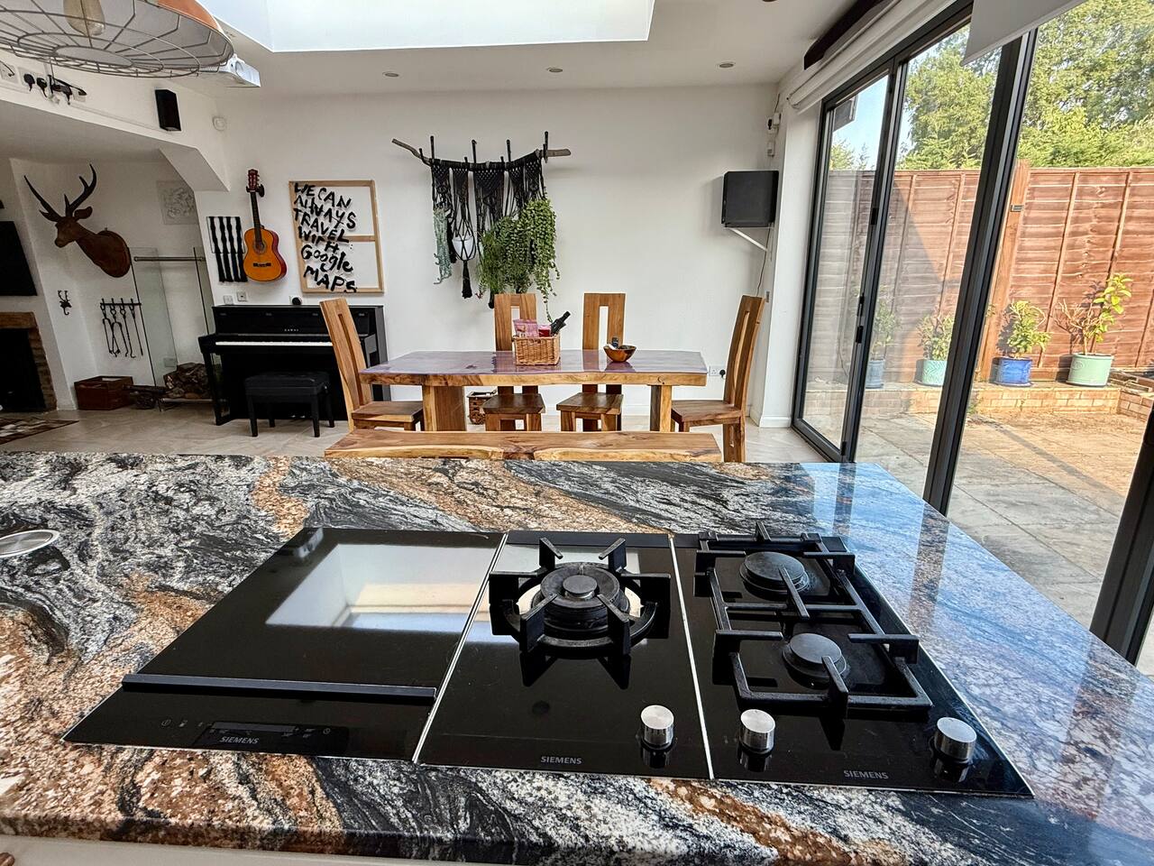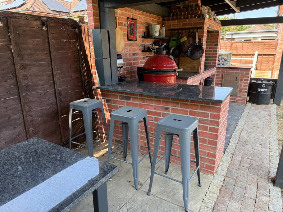Welcome to Your House in Windsor — a spacious and stylish retreat with a huge garden and a unique brick BBQ area, perfect for entertaining and relaxing. Large windows flood the open-plan living space and stunning Brazilian marble kitchen with natural light, blending indoors and out. With 3 comfortable bedrooms, 2 modern bathrooms, and a dedicated office, it’s ideal for families, friends, or work trips.
