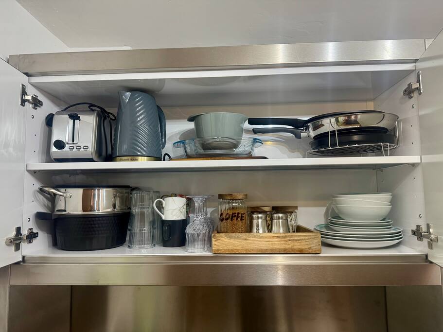 KITCHEN The kitchen is equipped with all the essentials for a comfortable and convenient stay. You’ll find a microwave with grill function and oven, hot plates, and a mini fridge with a small freezer compartment. Inside the drawers and cupboards, you’ll also find a kettle, toaster, pans, and all the basic cookware, utensils, and tableware you might need. Feel free to make yourself at home and enjoy a home-cooked meal during your stay! MASTER BEDROOM The master bedroom is designed for a restful and relaxing stay. It features a comfortable king-size bed with fresh linens to ensure a great night’s sleep. For your entertainment, there’s a 55-inch high-definition Smart TV, perfect for streaming your favourite shows or unwinding with a movie after a day out exploring Windsor. We hope you feel right at home! BATHROOM The bathroom is clean, modern, and designed for your comfort. It features a refreshing shower and an elegant infinity mirror, perfect for getting ready in the morning or winding down in the evening. Fresh towels, toiletries, and other essentials are provided to make your stay as convenient as possible. TERRACE The terrace is a lovely little spot to relax and enjoy some fresh air during your stay. It features a table with four chairs, making it perfect for morning coffee, an outdoor meal, or simply unwinding in the open air. Whether you’re starting your day or ending it, we hope you enjoy this cozy outdoor space. ADDITIONAL GUESTS There is a comfortable sofa bed for additional guests.